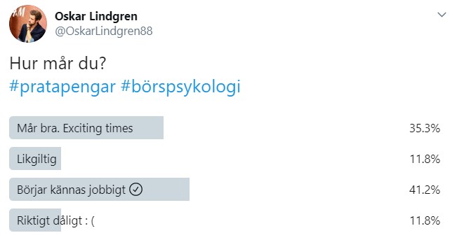 Men det är inte bara investerare på börsen som inte har humöret på topp. Tankarna går givetvis till de som blev inlåsta på hotellen i Teneriffa under deras 2 veckor som skulle bli deras semester. Dessa människor fick inte ens gå ut till poolområdet.