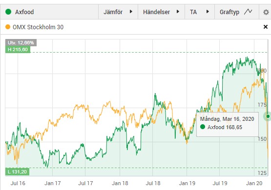 Även om bolag som Axfood och ICA står stadigt i lågkonjunktur betyder det inte att dessa är säkra i tider när kriser av olika slag bryter ut.
