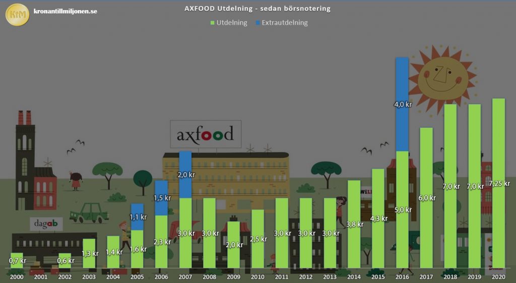 Kikar vi på Axfoods vinst förra året så blev den 7,87 kr/aktie. Av detta väljer man att dela ut 7,25 kr/aktie. Det är en rätt stor del, och det är väl det enda som jag personligen skulle se som något negativt nu när den faktiska försäljningen och vinsten blir osäker.
