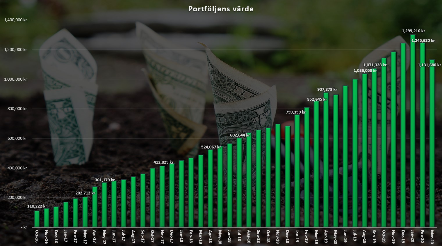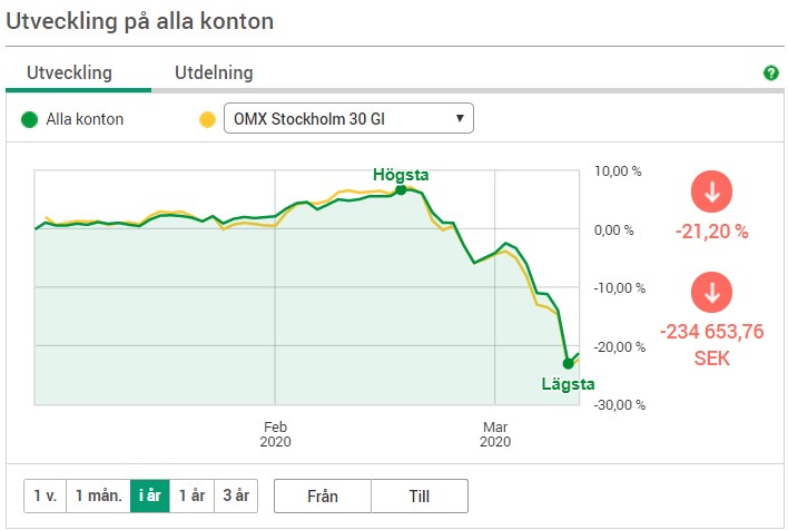 Nu när vi är mitt i den stora börsturbulens som Corona fört med sig så tänkte jag att det är dags att kika på vart portföljen befinner sig idag. Samt vilka följdeffekter rörelserna faktiskt fått när det kommer till min portfölj.