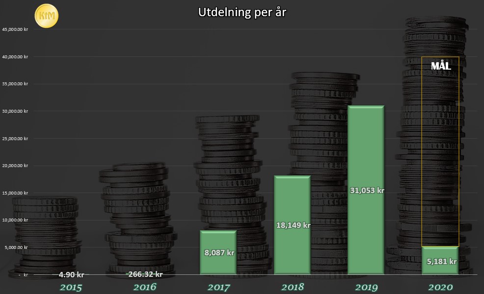 Med andra ord är det en rätt bra bit kvar upp till 54k. Att Corona nu sett till att vart och vartannat bolag i Sverige skjutit upp eller slopat utdelningen gör inte saken bättre. Vad jag gör är att jag siktar mot nästa år i stället och då kommer jag försöka komma så nära det här målet som möjligt. Troligtvis kommer jag redan då uppnå det.