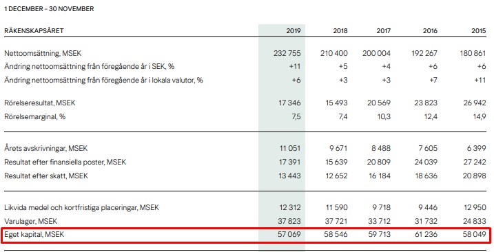 Vi ska komma ihåg att H&M i snitt sedan 2015 – 2019 haft ca 58 000 miljoner i eget kapital. Dessutom drar man nu in utdelningen på 9,75 kr/aktie för all den vinst man gjorde förra året. Det blir 1 655 072 000 (antal aktier) * 9,75 = 16 miljarder som man nu slipper betala ut.