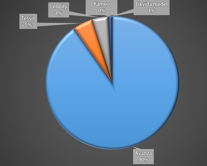 Som du kanske vet har jag den absoluta majoriteten av dessa 2,5 miljoner investerat i aktier via Avanza. Sedan har jag lite i följande påsar också: