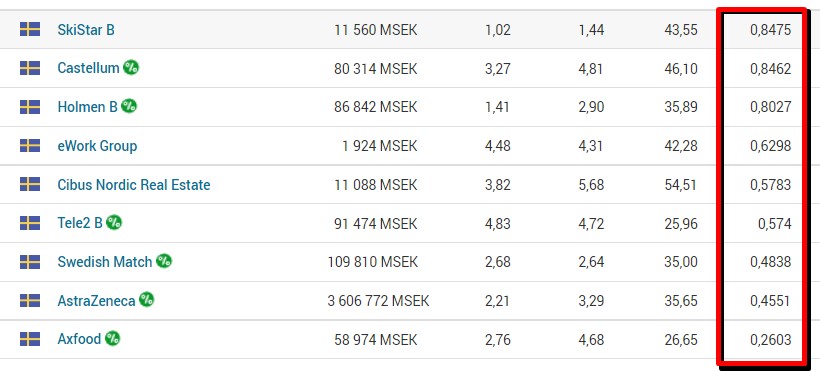 Ett intressant nyckeltal som jag sällan använder är beta. Detta beskriver hur pass mycket en aktie tenderar att svänga.