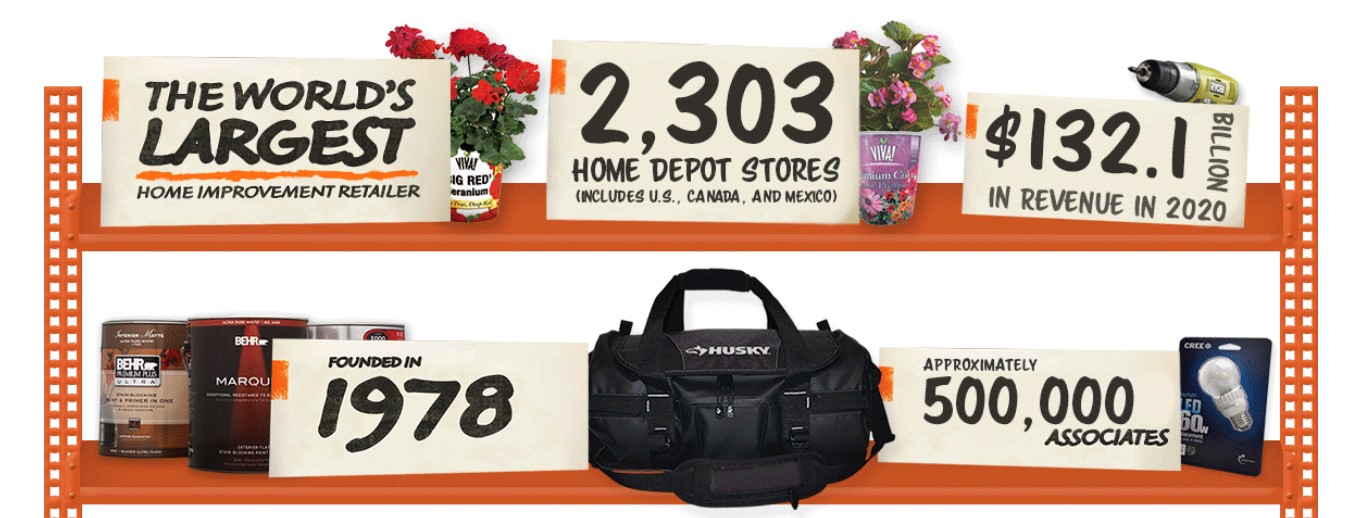 Idag har man över 2300 butiker i USA, Kanada och Mexiko där du hittar allt du behöver. Produkterna går även att köpa online. Bolaget tillhandahåller även tjänster för installation och renovering i hemmet.