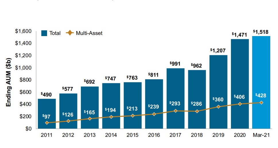 Totalt har man hela $1,6 biljoner (1600 miljarder) i Asset Under Management, alltså pengar som man har hand om och ska låta växa. Kanske kan det jämföras med BlackRock som har $10 biljoner (trillion).