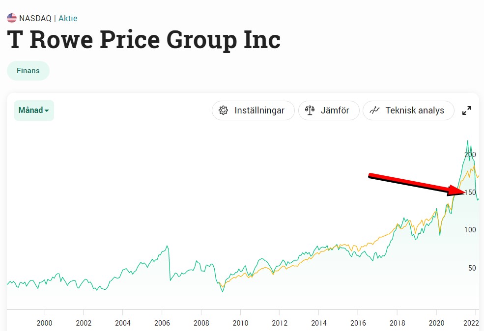 Kursen i T.Rowe har fallit rätt rejält nu med tanke på det som händer i Ukraina. Vi ser precis en återhämtning och jag skulle väl gissa att det inte blir värre förutsatt att inte situationen i Ukraina eskalerar ytterligare.