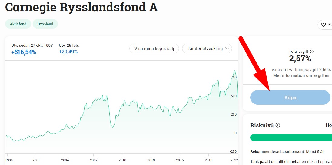 Jag har tidigare fått ett par frågor kring hur jag tänker kring att gå in i någon Rysslandfond nu när dessa verkligen tappat rejält. I helgen handelsstoppades däremot många Rysslandfonder och numer är det enbart möjligt att sälja.