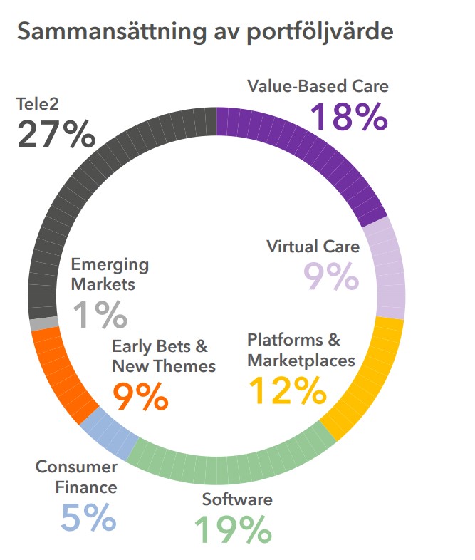 Förutom investeringar i tillväxtbolag får du också en hyggligt stor nettokassa samt en rejäl kaka Tele2 som finns med i min egna portfölj. Tele2 är också det enda som riktigt finns kvar av Jan Stenbecks gamla Kinnevik.