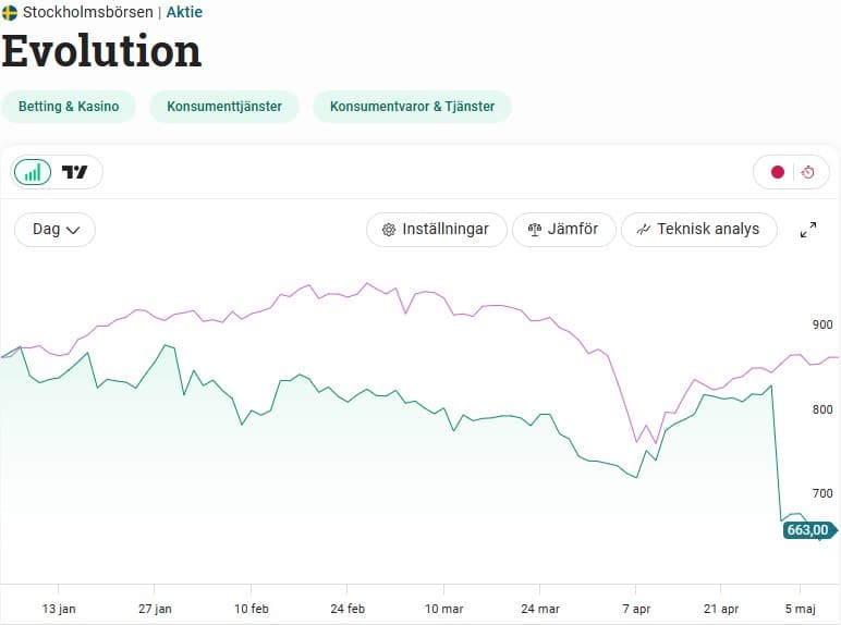Direktavkastningen är nu nästan 5%. Bolagets stabila kassa och att andra delen av halvåret spås bli ljusare kan mycket väl innebära att utdelningen i Evolution 2026 kan stå kvar enligt min gissning. Utdelningshöjningen blev väldigt tråkig i år men nu måste bolaget fortsätta köpa tillbaka aktier. Enligt mig är återköp det absolut viktigaste man kan göra för att fortsätta inbringa förtroende.