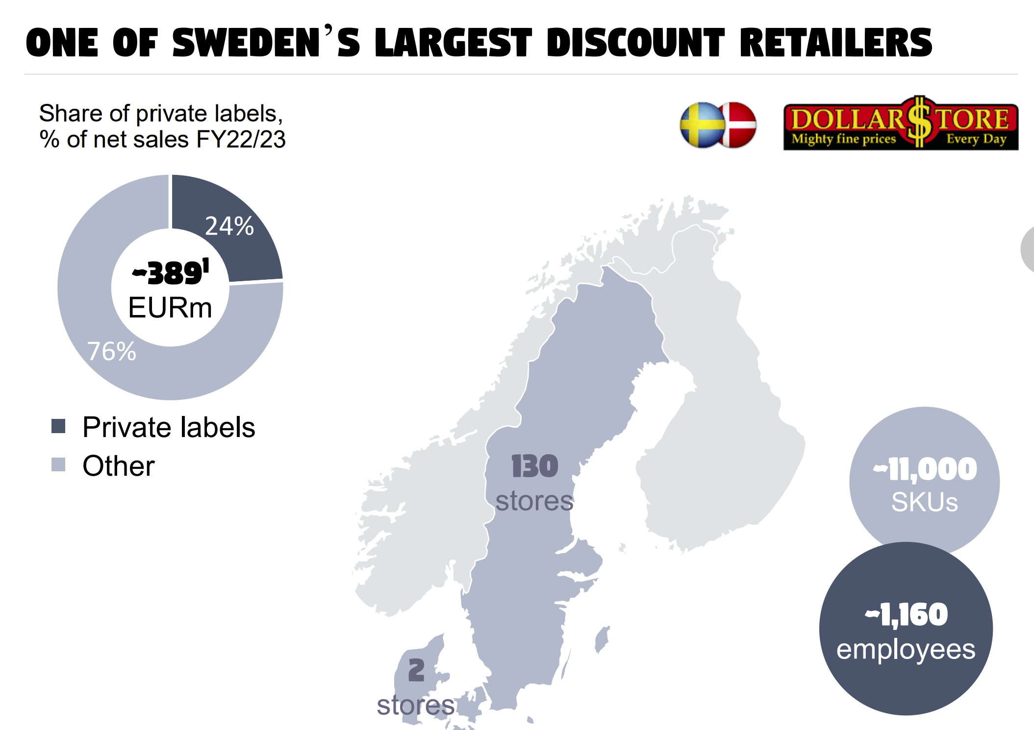 Fördelen är att Dollarstore lyckats vara en tillväxtmaskin här i Sverige. Tillväxten har ökat med 19% årligen men det beror främst på nya butiker så det är inte organisk tillväxt tyvärr.