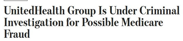 Problemen har pågått en tid men i veckan kom en nyhet som fick aktien att backa ytterligare 16%. Nu är det amerikanska justitiedepartementet som anklagar United för så kallat medicinskt bedrägeri, Medical fraud. Jag var själv inte insatt i begreppet men enligt ChatGPT är det: