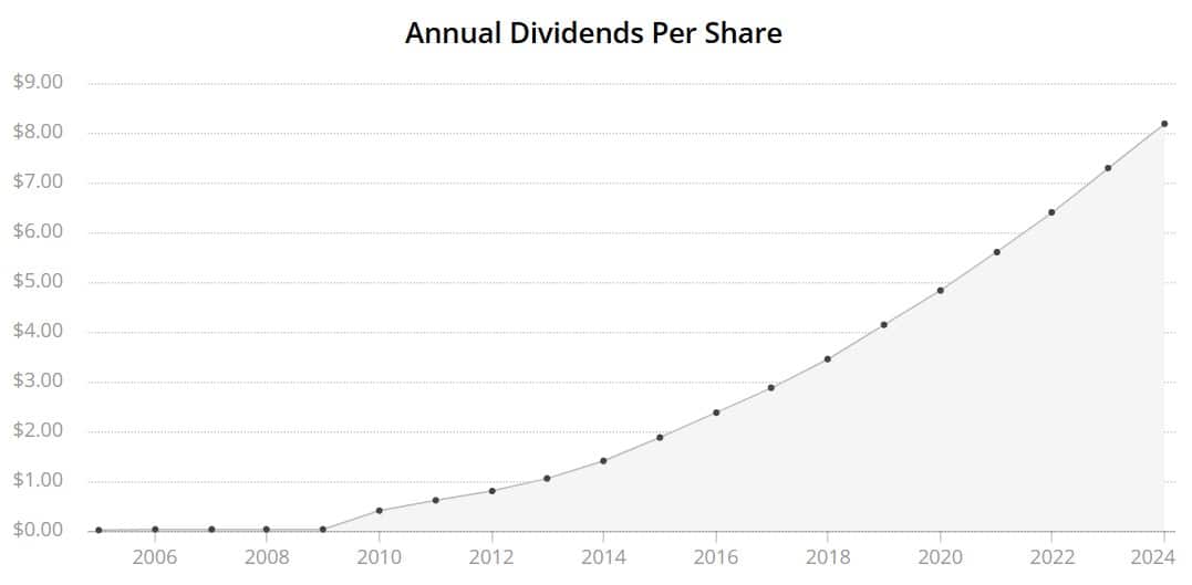 De sista 10 åren har utdelningen ökat med 19,3% årligen – en otroligt stark siffra. Förra gången den höjdes så var det med 11,7%