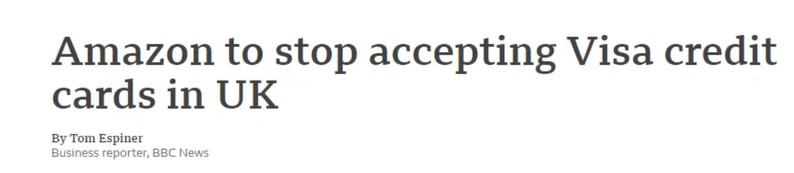 Den 17:e november – Amazon. Här kom då nyheten om att Amazon sätter stopp för Visa kort utfärdade i UK. Vad som är värt att notera här är att Visa snabbt kommunicerade att man jobbar på en lösning till detta.