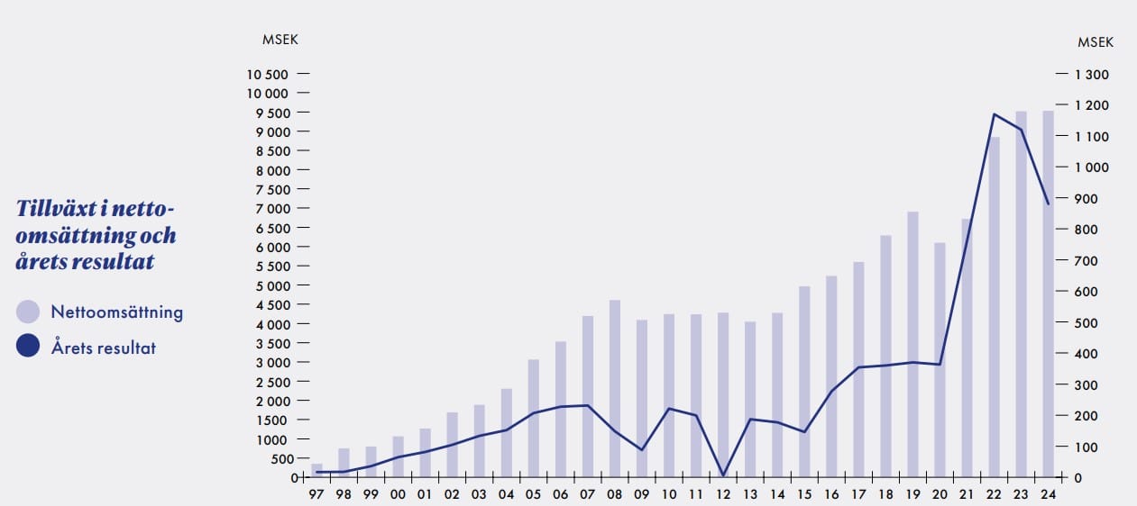 Utdelningsandelen, alltså hur mycket av vinsten man delar ut, har dessutom höjts år för år. 2017 och 2018 var den kring 30%. För räkenskapsåret 2024 delade man ut drygt 50% av vinsten.