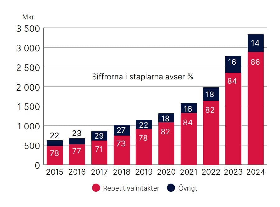 Andelen repetiviva intäkter i Vitec har vuxit och utgör nu 90% av totalen (Q3 2025)