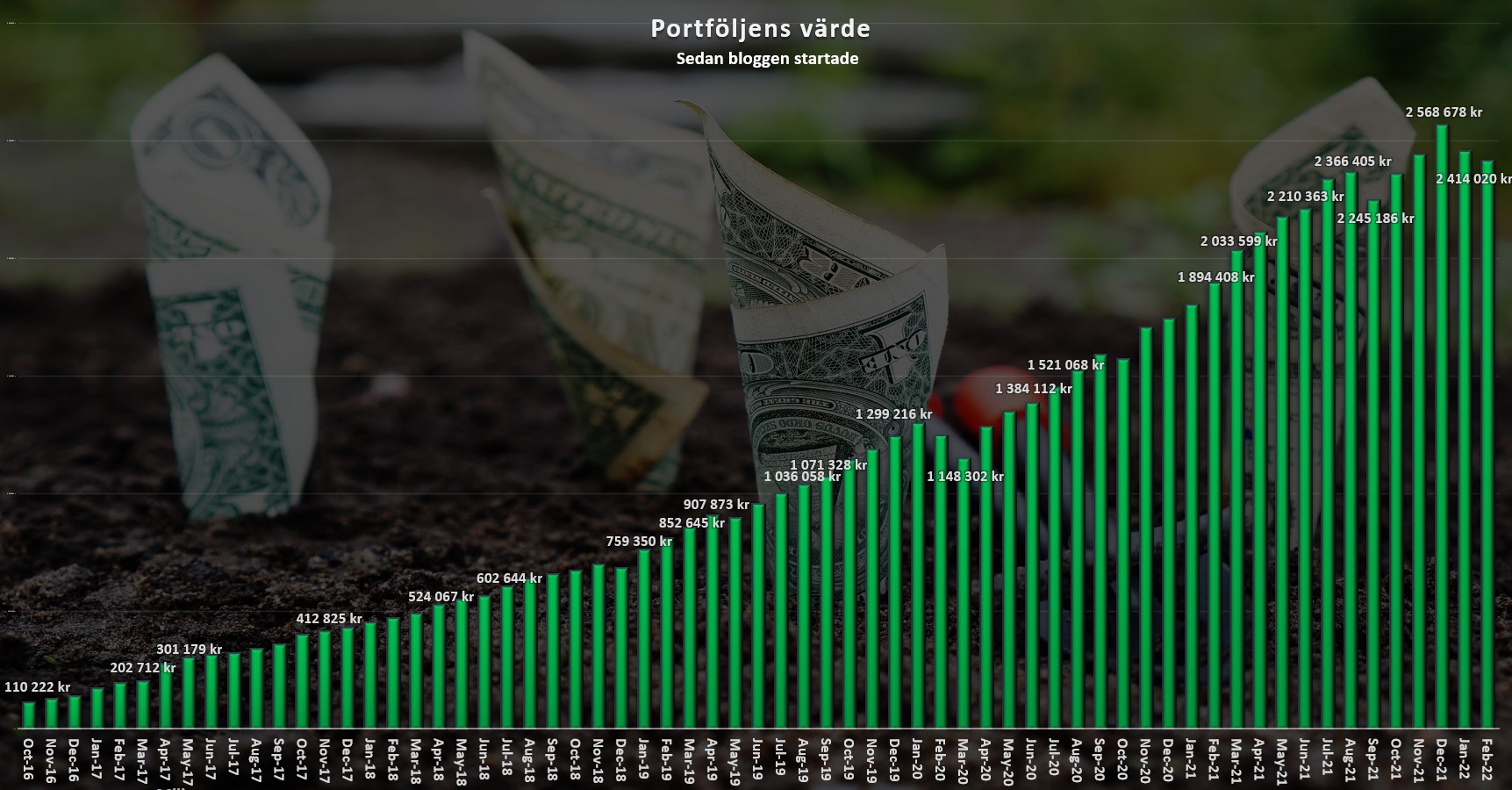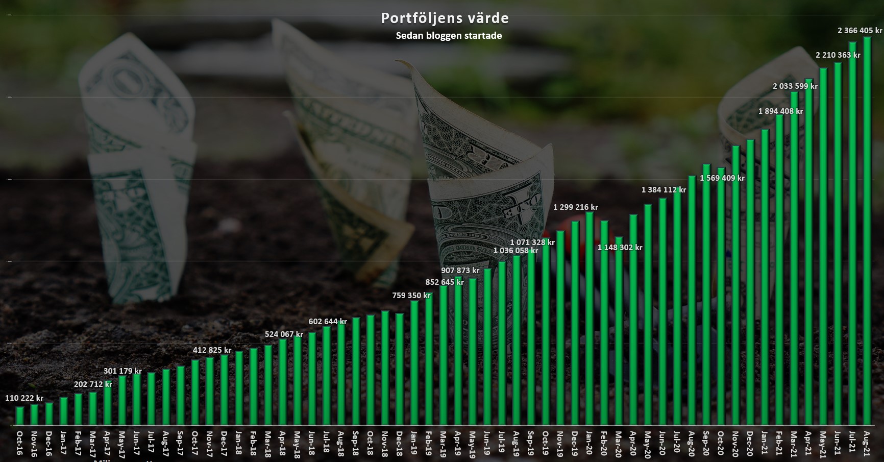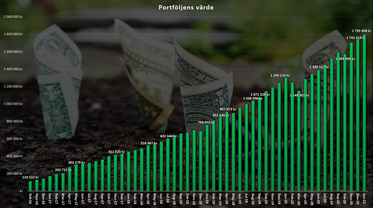 Portföljvärdet idag är ca 2,4 miljoner. Så där har ni det.