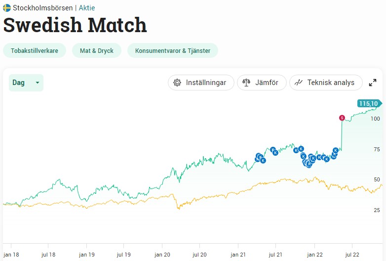 Kanske inte så konstigt med tanke på att Castellum nu ger 0% direktavkastning samt att Swedish Match numera ägs till 85,87% av Philip Morris och är på väg ut från börsen.