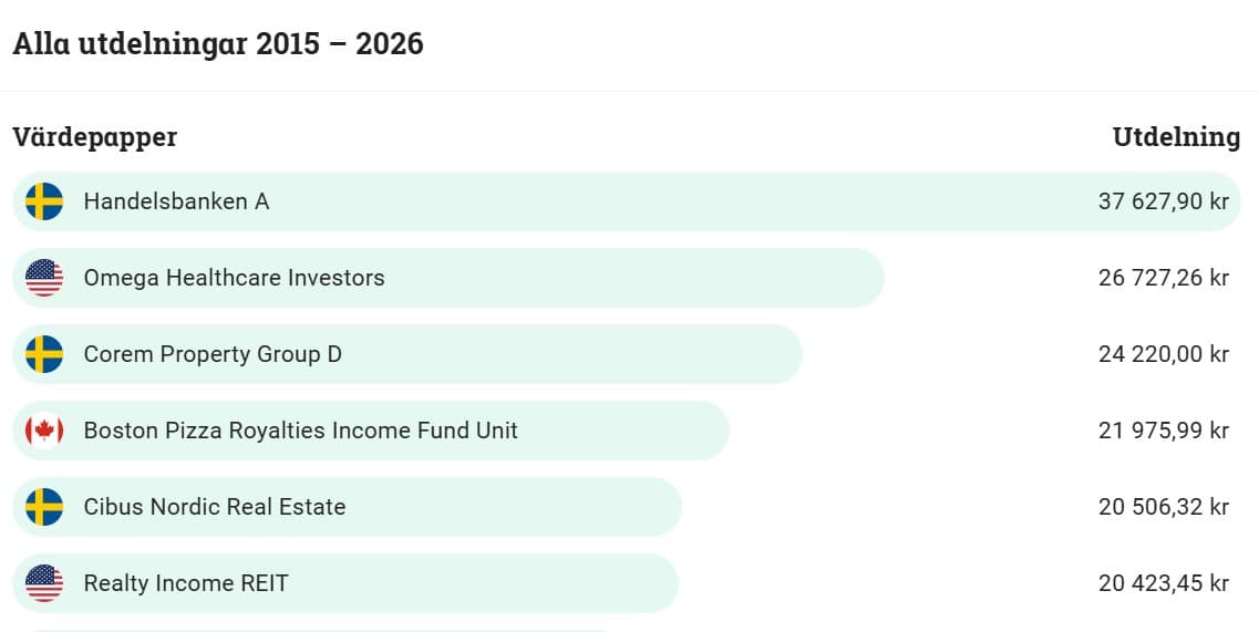 Oktobers siffror gör också att jag tangerar utdelningsrekordet förra året med två månader kvar av 2025. Allt som inkasseras i november och december blir alltså en bonus. November brukar även vara en av de bättre utdelningsmånaderna för mig.