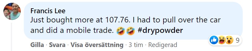 I en grupp jag följer dĂ€r jag ocksĂ„ tursamt fick reda pĂ„ det hĂ€r sĂ„ var det en som stannade vid sidan av vĂ€gen för att köpa aktier via mobilen. Typiskt oss utdelningsinvesterare som inte vill gĂ„ miste om ett fint klipp. Lite som nĂ€r frun ser en rabattkod frĂ„n nĂ„gon onlinebutik kan jag tĂ€nka mig đ