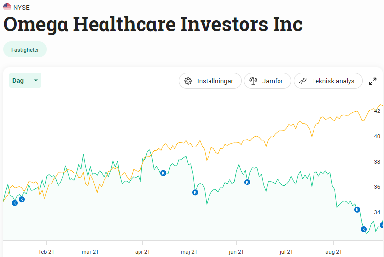 Köpen jag gjort är i Omega Healthcare Investors (OHI) där jag köpt i tre omgångar under rätt kort tidsperiod: