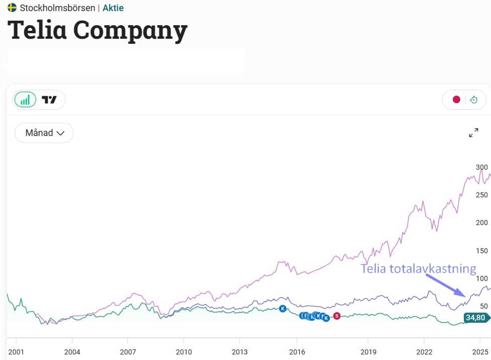 Det här är nog också anledningen till att jag nog aldrig tagit in varken Ericsson eller Telia i min portfölj allt sedan jag såg totalavkastningen som en viktig del i min analys