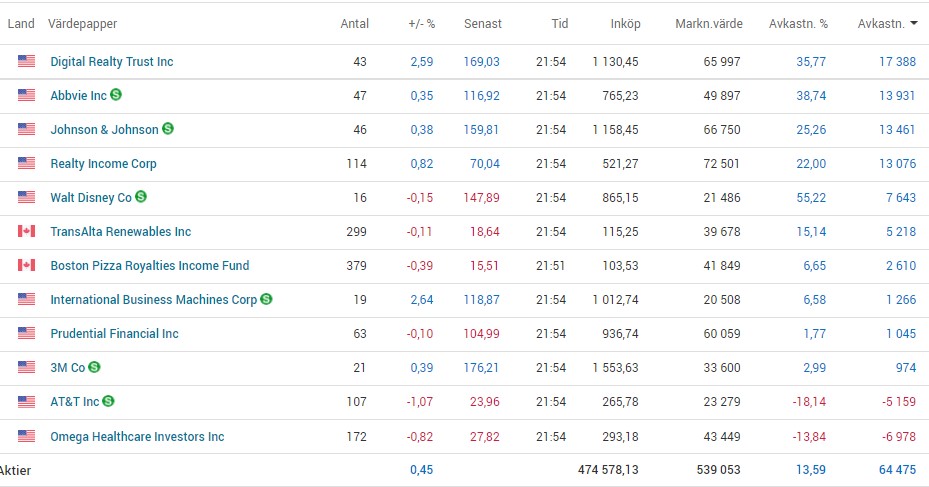 Den här portföljen är inte konstruerad för att kunna fördubbla sig själv inom en vecka, utan snarare för att ge en stabil avkastning över tid med ett tydligt defensivt tänk. Jag gillar bolag som år efter år kunnat höja utdelningen och verkligen visar tecken på god ledning och gynsamt framtidstänkande.