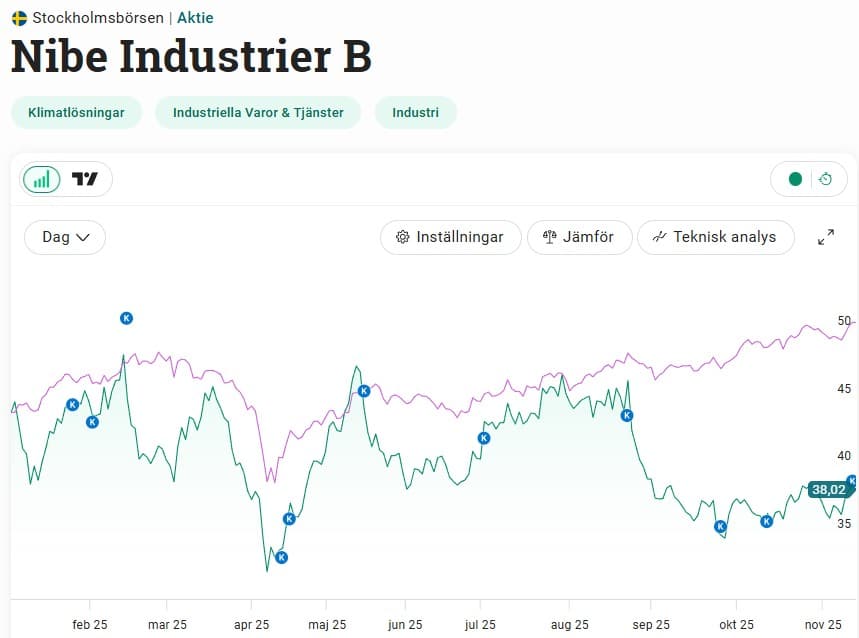 Det har varit en stor berg-och-dalbana i aktien under 2025 och marknaden vet inte riktigt vart man ska skicka kursen verkar det som. Klart är i alla fall att Nibe ännu ett år (hitintills) inte hängt med index.