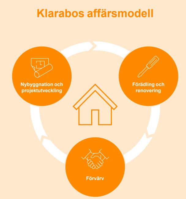 Bolaget beskriver själva sig som ett fastighetsbolag med ett långsiktigt förvaltningsperspektiv inom bostadsfastigheter. Idag är Klarabo uppdelat inom 3 områden: