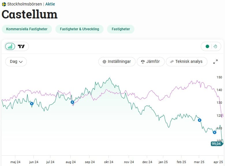 En annan stor sak som händer är att Castellum gått ut med att det finns ambition att köpa hela Entra (norskt fastighetsbolag).
