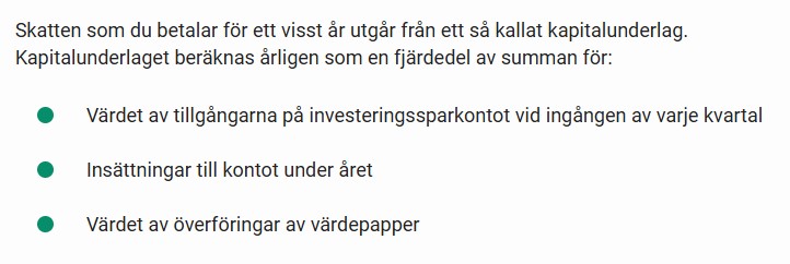 Tar du sedan ditt genomsnittliga värde av ditt ISK under året (2025) och multiplicerar med 3,55% får du summan du ska skatta 30% på. Det här syns i din deklaration.