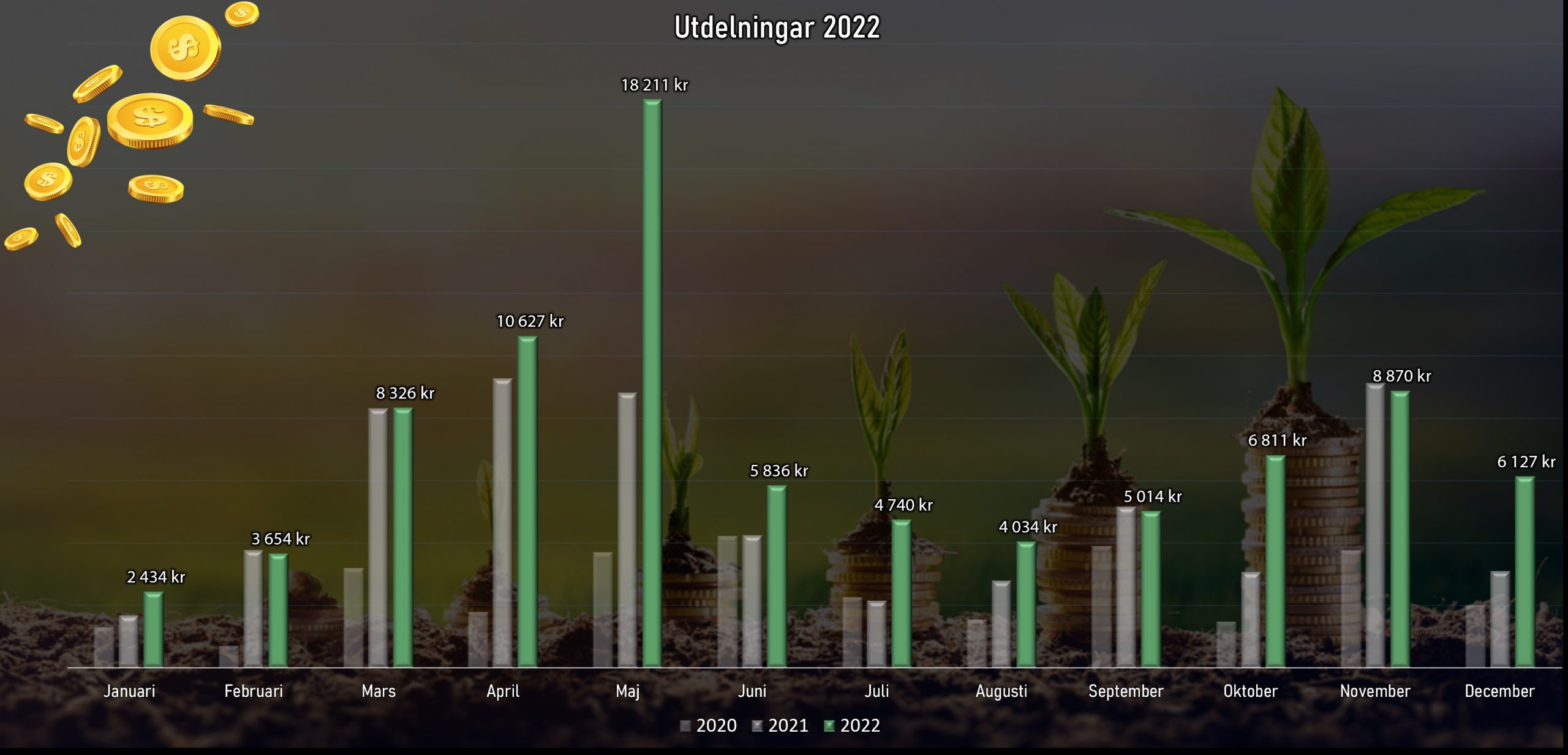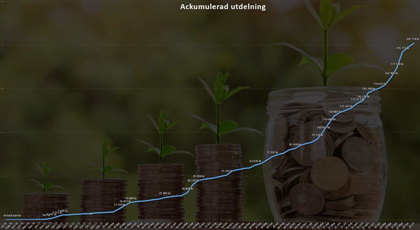 2015 fick jag 4,9 kr i utdelning. Det har helt klart gått en tid sedan dess. Utdelningen växte till hundralappar som sedan blev tusenlappar årligen. Utdelningar är min passion och på bloggen får du följa min resa att hitta de bästa utdelningsbolagen och att kombinera dessa på bästa sätt. Målet i år är att skrapa ihop 75 000 kr i utdelning.