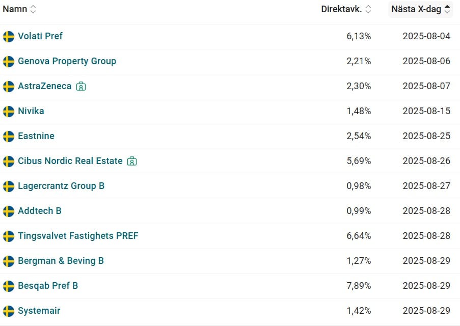 Söker du utdelning under sommarens sista månad finns det tyvärr inte så mycket att välja bland här i Sverige. Här är de aktier som har x-dag under augusti: