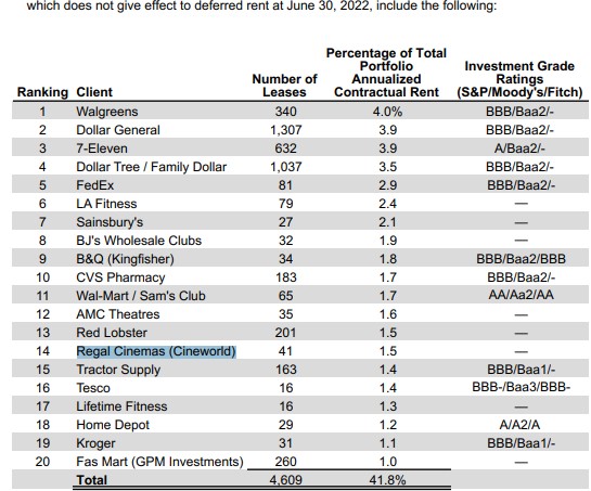 I Realty Incomes rapport för Q2 fanns Cineworld med på listan bland kunder som hyr in sig i fastigheterna som man äger. Det är bara så märkligt att man inte skriver om detta tydligt i sina pressmeddelanden. Men så är det väl allmänt känt att amerikanska bolag gärna lyfter fram det som går bra men sopar under mattan motgångar.