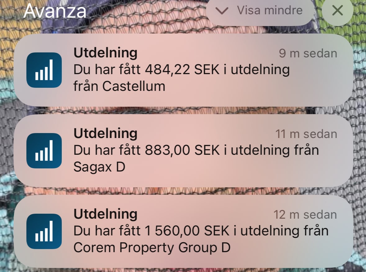 Igår satt jag i godan ro med en kaffe och ett par skivor Gene Tunnbröd samtidigt som jag svarade på några jobbmail. Det blir alltid en form av context-switch när man sedan hör ”katsching-ljudet” från Avanzas appen likt en härlig melodi som indikerar att ny utdelning finns att återinvestera.